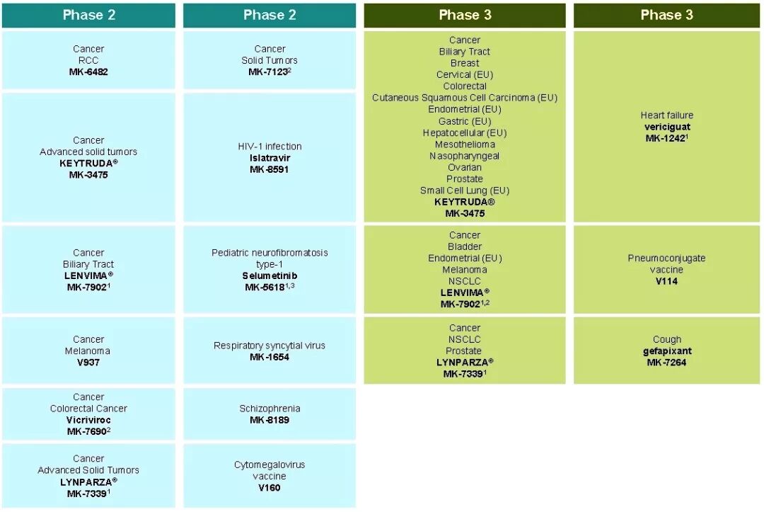 默沙东于2019年11月公布的最新二期和三期临床研发管线