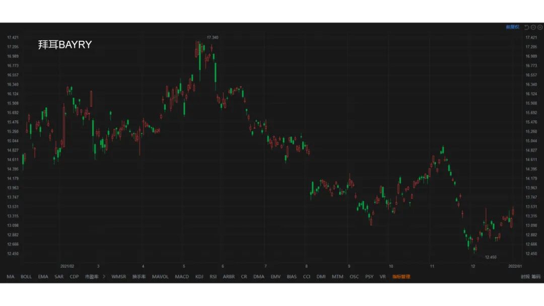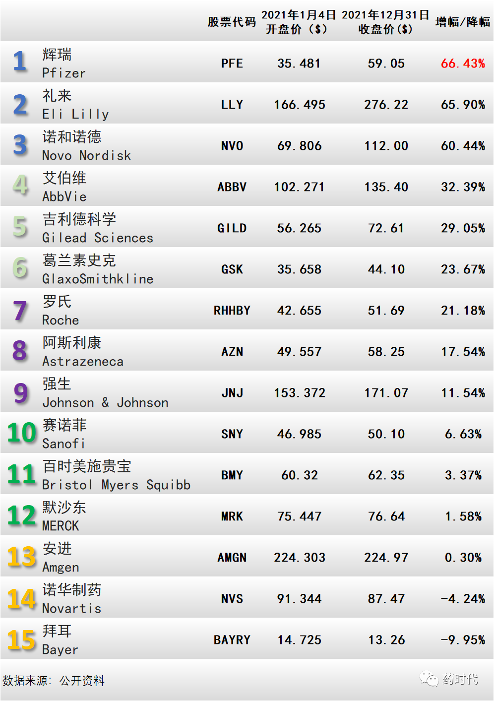 在等待的同时,我们挑选了15家企业,对其2021年的股价表现做了分析汇总。根据2021年最后一个交易日的公司市值,排名顺序如下: