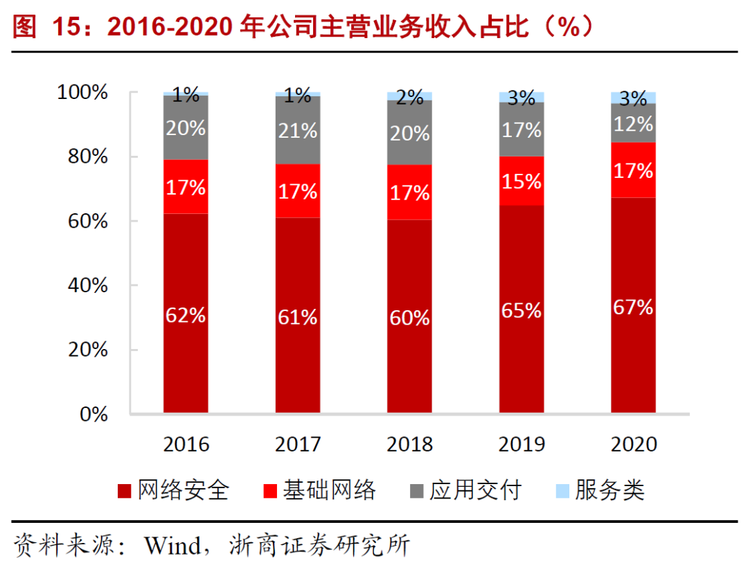 主要产品包括网络安全产品、应用交付产品及基础网络产品等: