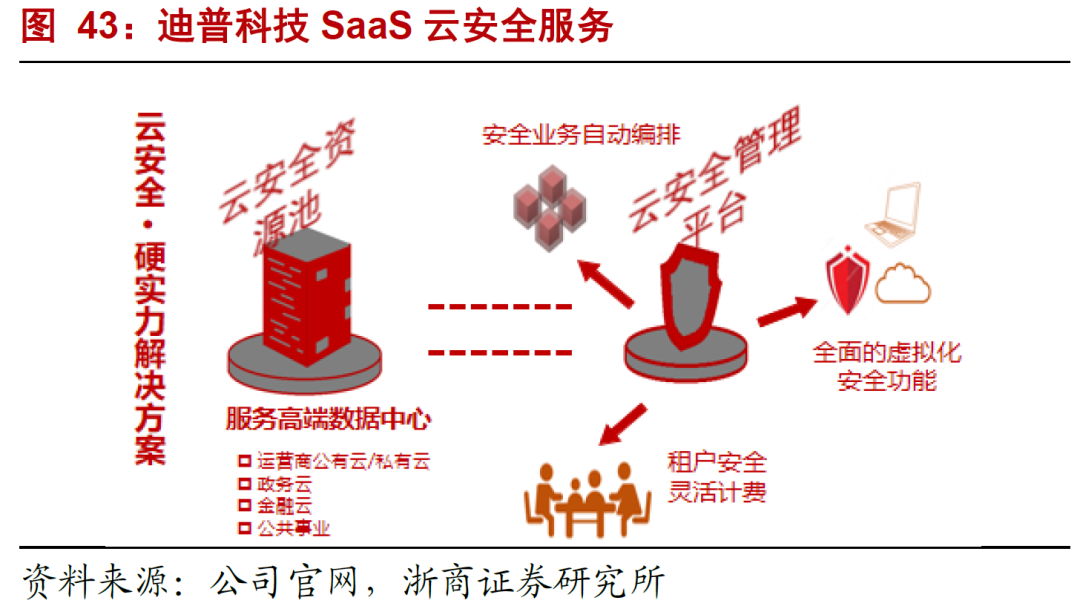 (1)云安全:公司“云安全、硬实力”云数据中心安全解决方案,通过独立的硬件安全设备解决云网络安全问题,主要包含云安全、安全云、云管理三个部分,帮助用户构建自动化部署的安全资源池,为云网络提供全面、弹性、可编排的安全防护能力。