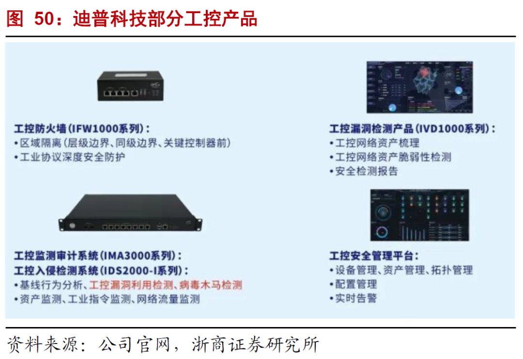 (5)工控安全:2016年,成立工控安全产品研发团队。2019年,推出全系列工控安全产品及解决方案,形成以区域边界防护、旁路监测审计、检查评估分析工具、统一工控安全管理平台及态势感知为一体的解决方案。2020年,公司推出适用于工业控制网络及工业互联网场景的工控防火墙、工控监测审计系统、工控漏洞检测平台、工控安全管理平台等。目前,公司工业互联网安全解决方案,囊括了从工控防火墙、工控审计、工控检测到工控安全管理平台在内的完整工业网络安全保障体系。