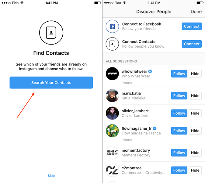 当人们刚接触Instagram这个平台时,他们还没有关注任何人,一个好的空状态设计可以为他们提供“添加关注的人”选项。