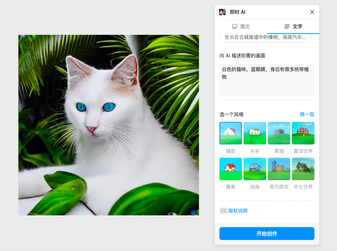 但现在有了「即时 AI」 ,使用 AI 绘画前所未有的简单。哪怕用一个字都能绘图!比如输入:猫,只需要几秒钟,一幅摄影写实风格的猫咪肖像就出来了👇![]()
