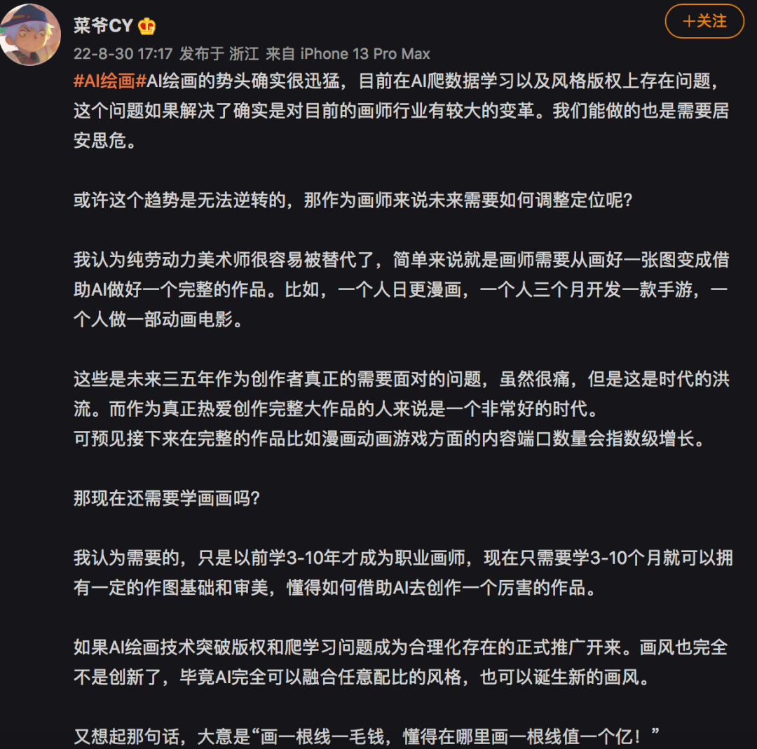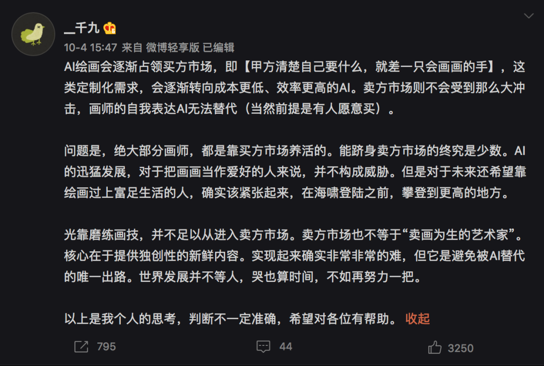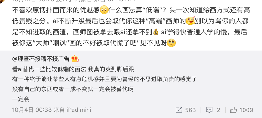“低端”这个词固然不中听,但AI对一部分画手的生存威胁确实存在。