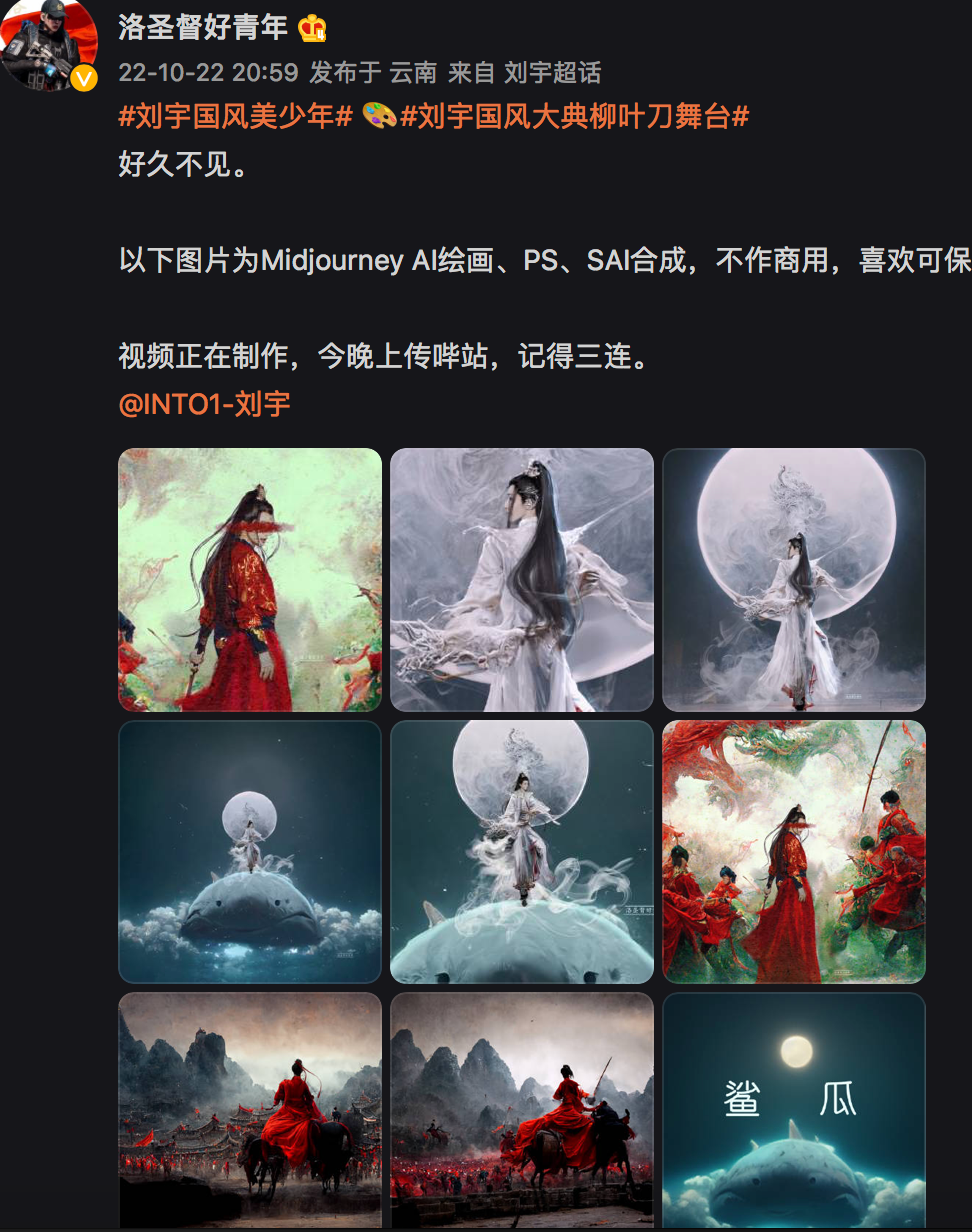 AI作画在二次元风格上进步迅速。图源微博,作者见水印
