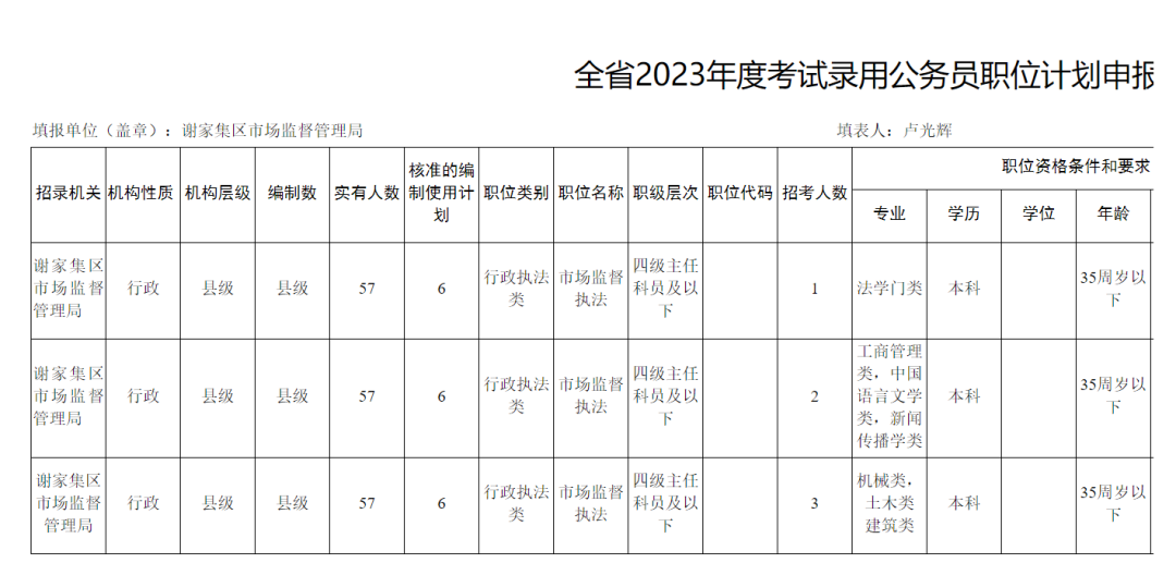 2023湖北公务员招录岗位计划