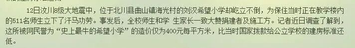 校舍建造的质量,当然必须追究,那些偷工减料的建筑承包商和其他责任者,必须受到法律严惩。我现在想不出在目前这种情况下,还会有什么机构胆敢包庇这些人。你们请愿所说的话,其实早已是各级政府和广大民众的决心。但是,这需要有一个过程。