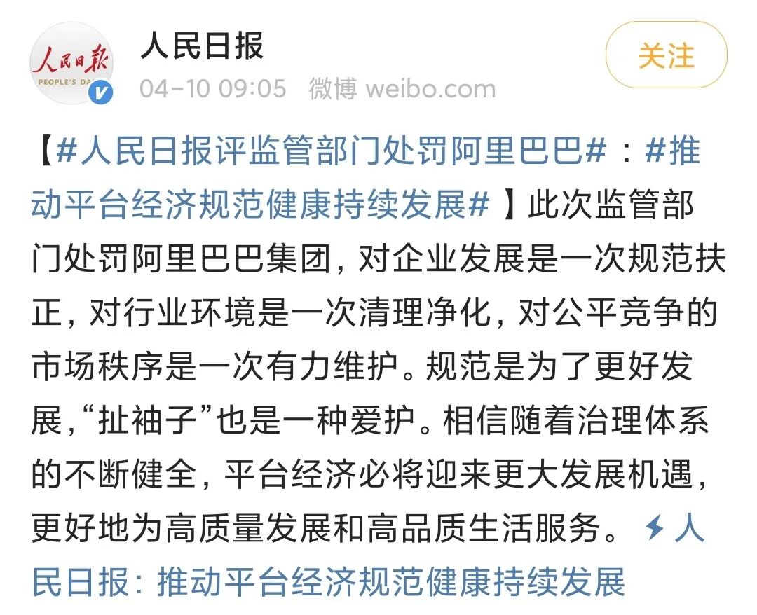 当然很多阿里粉丝说彻底洗白了,过于乐观,这只是曙光,罚款表明政府的初步态度,有了结论,但事情还没完全解决,尚有几项后续收尾工作。