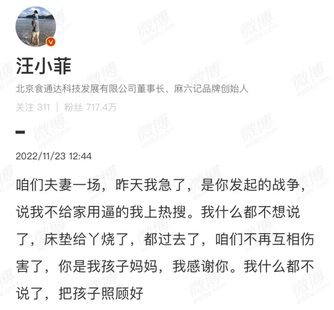 两口子那点事,反复炒,非常烦。我是心疼他们孩子,长大以后如何面对父母这段狗血,也理解网友的吃瓜,天龙八部,有情皆孽,无人不苦。