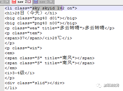 lines.p : 获取第一个p标签,即<p class="wea" title="多云转晴">多云转晴</p>;lines.a/lines.li等都是一样的道理;