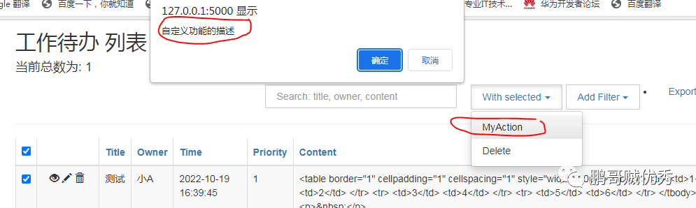 @action('myaction', 'MyAction', '自定义功能的描述')