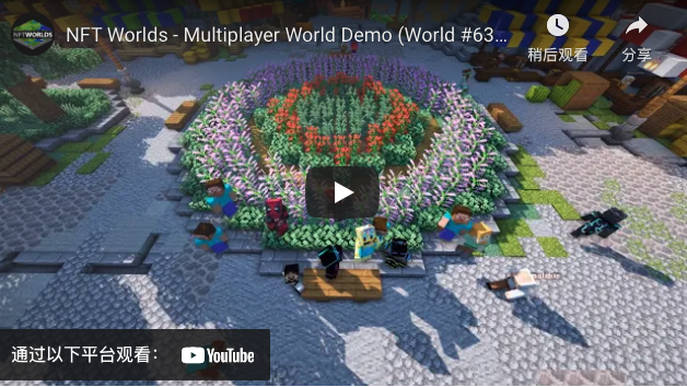 NFT Worlds[6]是以太坊区块链上以 NFT 形式存在的 10,000 个虚拟世界的集合。每个世界都是一个无限的宇宙,可以构建出用户可以想象到的任何东西。NFT Worlds 建立在 Minecraft 之上,每个地块都是一个迷你虚拟世界,用户可以按照他们的想法制作、塑造和设计。每个都有独特的特征,游客可以自由探索它们。由于 NFT 所有者可以以任何方式塑造他们的环境,可能性似乎是无穷无尽的。他们甚至可以创建新的游戏模式。例如,社区创造了角色扮演游戏、塔战游戏和第一人称射击游戏。这些中的每一个游戏都具有 play-to-earn 机制来赚取 WRLD 或由 NFT Worlds 提供的其他奖励。
