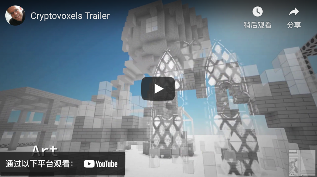 在所有链上虚拟世界中,Cryptovoxels[4] 是最容易上手和建造的一个。如果你想尝试一下,只需单击一个简单的 URL 即可将你带入 Cryptovoxels 世界,无需花哨的软件或特定硬件。此外,玩家无需拥有土地即可访问和享受 Cryptovoxels。想要购买土地的人应该知道,每块地块都是一个 NFT,这意味着它是独一无二的,不能被重新创建或复制,就像现实生活中的物理土地一样。每个 Cryptovoxels 土地 token 都有单独的坐标,对应 Cryptovoxels 地图上的特定位置。靠近热门地区、建筑高度和靠近中心城区,通常意味着更高的价值。