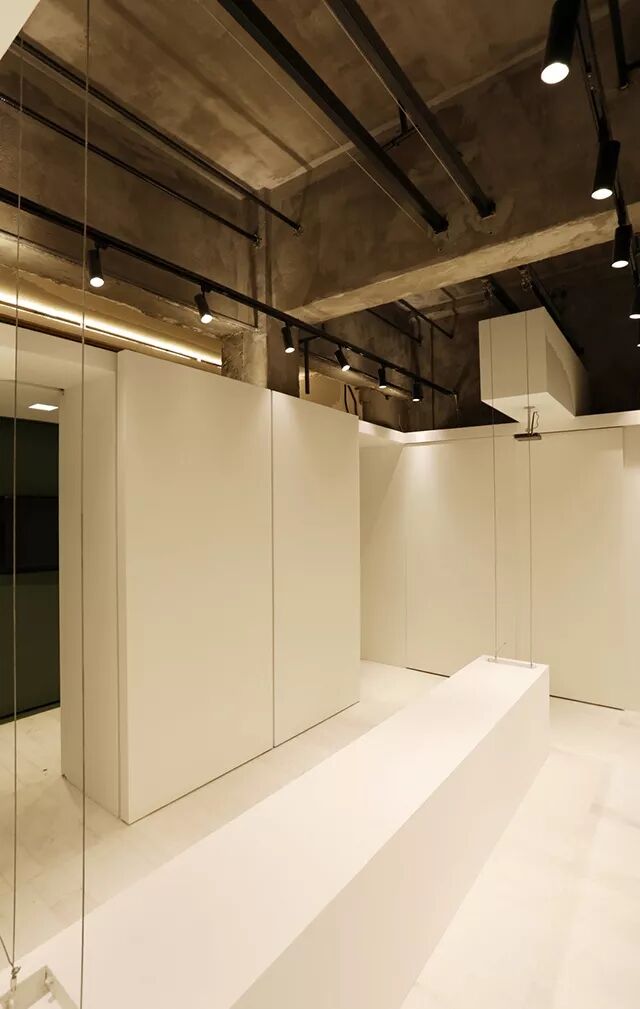 [ 东湖路37号室内,室内层高较高,因此展台设计为可升降,充分利用空间高度 ]