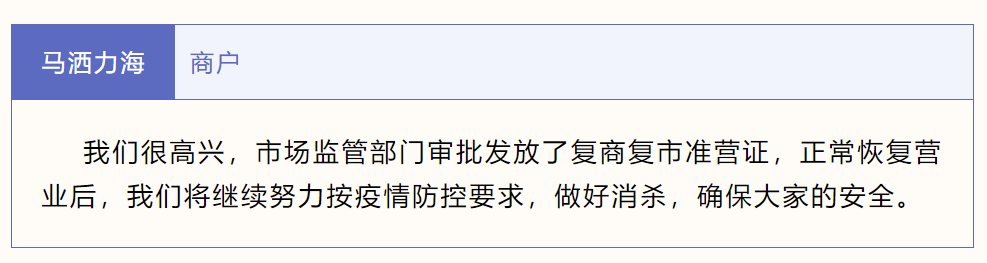 同样,在夺底街道桑伊社区从事旧家具经营的商户马洒力海,和其他几家商户一起,从城关区市场监管局工作人员手中拿到复商复市准营证后,按耐不住激动的心情。