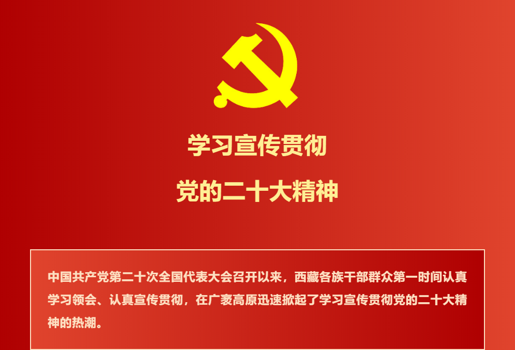 10月26日上午,自治区召开领导干部大会,传达学习贯彻党的二十大精神。自治区党委书记王君正主持并讲话。强调,学习宣传贯彻落实党的二十大精神是当前和今后一个时期全区各级各部门和广大党员干部的首要政治任务。要认真学习宣传贯彻落实党的二十大精神,紧密联系党的百年奋斗历程特别是党的十八大以来新时代十年的伟大变革,深刻领悟“两个确立”的决定性意义,增强“四个意识”、坚定“四个自信”、做到“两个维护”,深入学习领会党的二十大报告的重要思想、重要观点、重大战略、重大举措,切实把思想和行动统一到党的二十大精神上来,统一到党中央决策部署上来,努力开创西藏长治久安和高质量发展新局面,推动党的二十大擘画的宏伟蓝图、作出的决策部署在西藏落地见效。