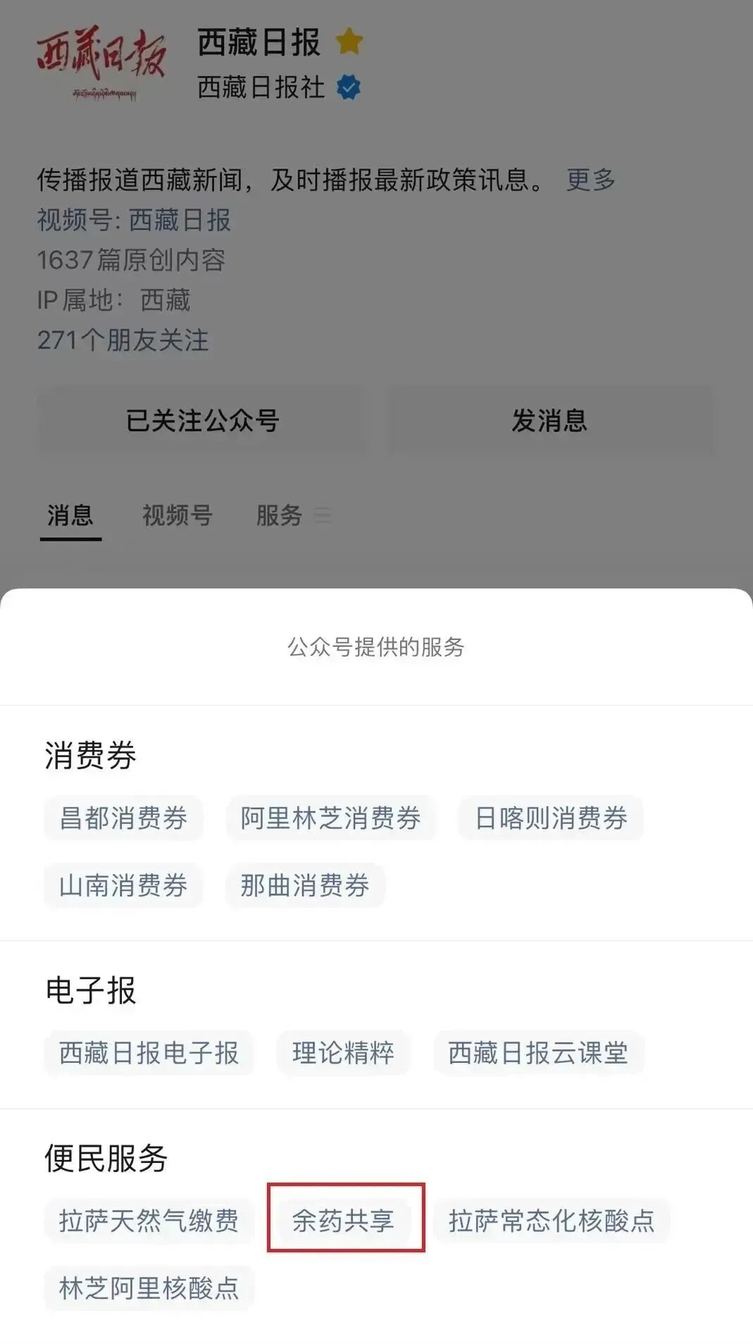 通过西藏日报“余药共享”进入。