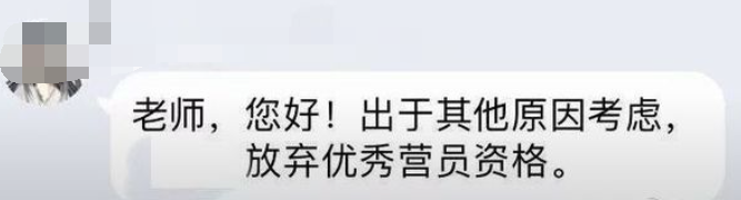 可就在几天后,该学生又表示,出于其他原因考虑,选择放弃资格。(