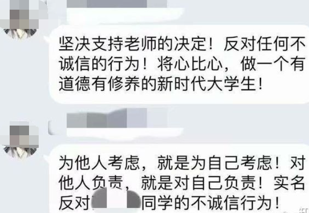 当时底下也有学生表示支持老师的决定,一定要将心比心不做违信行为,
