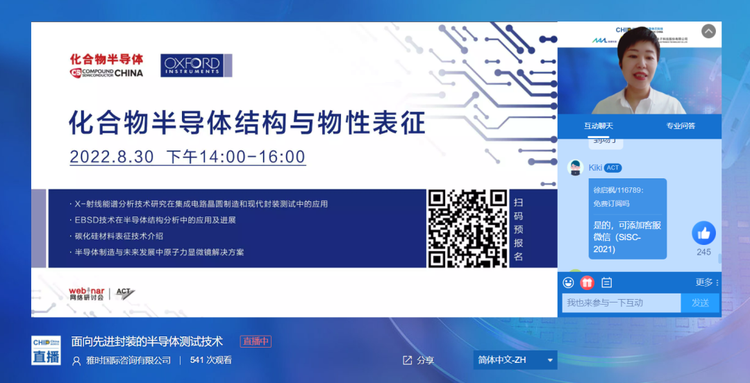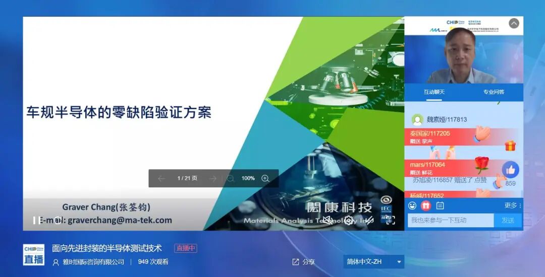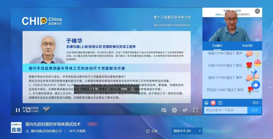 ACT雅时商讯总裁、《半导体芯科技》出版总监麦协林先生在致辞中,向所有上线嘉宾表示欢迎和感谢,期待通过本次会议加强半导体封测产业全球化协作。在这半天的直播时间里,共有1000+观众报名参加、上千条评论区实时互动留言,2873次点赞鼓掌,高效的互动问答更是引发多轮“学术潮”,有效促进我国封测企业间的联动与合作。