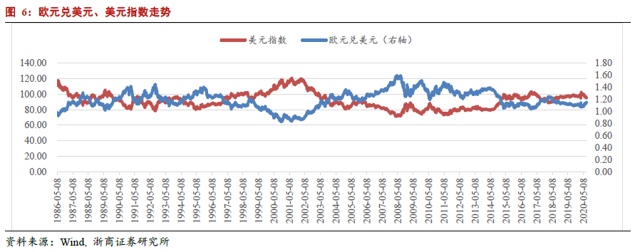 从美元指数看,我们认为其将继续围绕在前低95的附近波动。伴随着欧洲财政刺激政策的率先出台,美元指数已在价格中计入大量利空因素。后续,中美两大经济体的对峙与摩擦将继续在前低95附近对美元形成支撑。