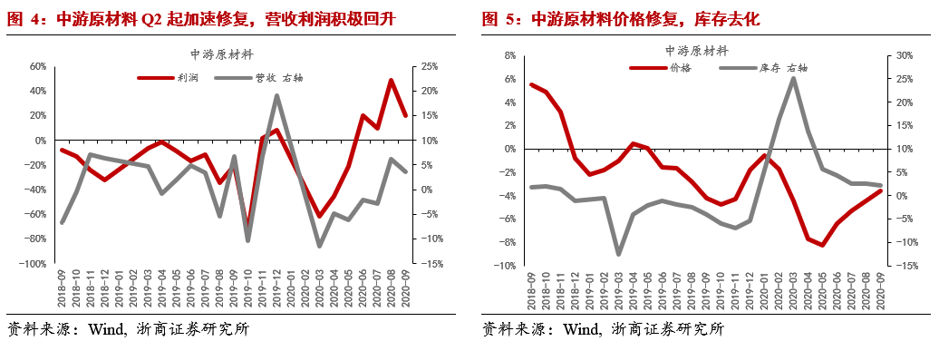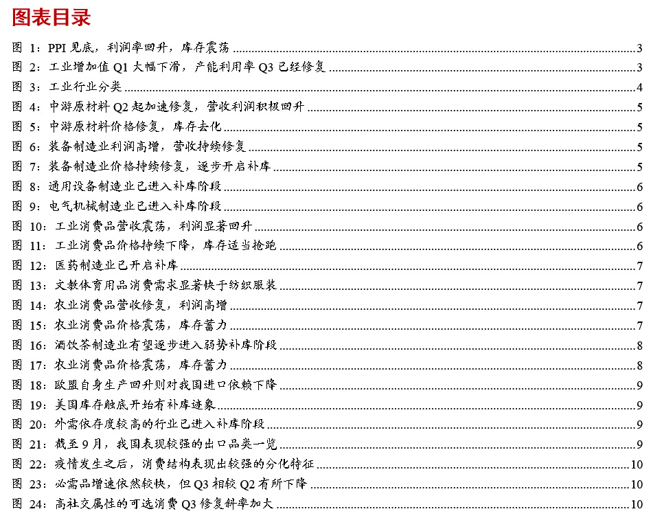 我们在2020年7月《两个大循环对利润拉动开始显现》报告中提出,年内库存周期将呈现出一个“下蹲-蓄力-起跳”的特征,即“被动去库-库存震荡-主动补库”三阶段,并提出Q4大概率开启主动补库,目前仍维持这一观点。