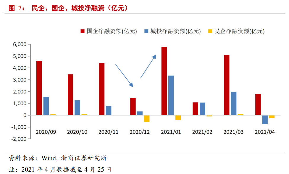 我们持续强调,3月信贷、社融数据意味着信用收缩已经全面开启,2020年12月中央经济工作会议及今年两会等重要会议均持续强调稳定宏观杠杆率、保持货币供应量和社会融资规模增速同名义经济增速基本匹配,顶层定调基本确定,我们认为稳杠杆是2021年政策总基调,主要体现为信用收缩,其中,企业债券融资也将面临回落压力。