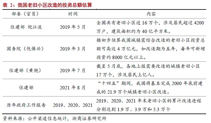 从细分领域来看,在棚改规模逐年下降后,未来保障性安居工程需要重点关注保障性租赁住房和老旧小区改造两个方面,然而短期内大幅拉动地产投资存在难度。一是保障性租赁住房方面,部分核心城市现有增速已经较高,进一步增长空间有限。二是老旧小区改造对地产投资的拉动不宜过分乐观。原因如下:第一、待开工老旧小区库存已不多,后续需观测施工进程带动的投资情况。第二、老旧小区估算投资总额在地产投资中占比有限,约为5%-6%。第三、老旧小区改造并非全部属于地产投资。