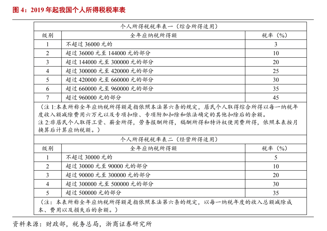作为重要的财税制度改革,我们预计房地产税大概率对第一套房不征收,采取阶梯型累进税率。在兼顾收入分配和调控房价的角色下,上述举措充分发挥房产税差别税率的作用,对购买第二套房以上的购房者可以适当提高房产税率,一方面可以增加购房者继续购买二套房以上的成本,抑制投机性需求;另外一方面,施行这种累进式的税率制度也可以充分发挥其收入再分配的作用。在这种情况下,仅能买得起一套房的中产阶级只需要交少部分税,而愿意并且有能力购买二套房以上的富人需要交更多的税,差别税率起到了调节收入分配、缩小贫富差距的作用。