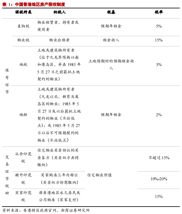 【浙商宏观||李超】中国香港地区对我国房产税试点扩大借鉴意义有限——房地产税系列报告(三)