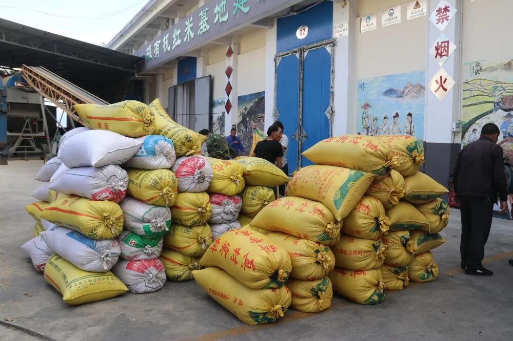 打好“基地牌”,保障优粮源。依托元阳县“十个一”产业链“一粒米”专班,创新“公司(合作社)+基地+农户+互联网+”经营模式,按照“规划+品种+技术+用水+防虫”的“五统一”要求,通过无偿提供红米籽种、薄膜、技术服务,并与农户签订保底收购协议等措施,推进梯田红米规范化、标准化种植,实现红米品质均达国标二等粮以上。全县已建设15万亩优质粮源基地,发展订单基地5万亩,培育优质红谷繁育基地1500亩,通过与中科院作物研究所合作,研发梯田红米品种16个,辐射带动全县种植梯田红米面积达10万余亩,种植农户2.6万户,总产量达4万余吨,农业总产值达2.4亿余元,实现产量、品质双提升,“优粮优产”取得明显效果。