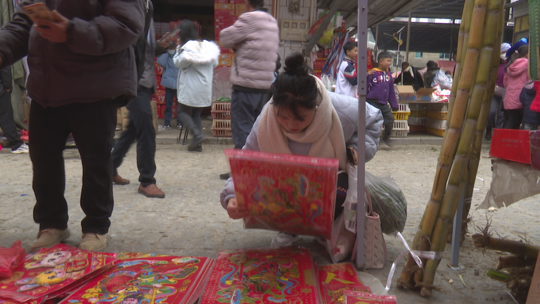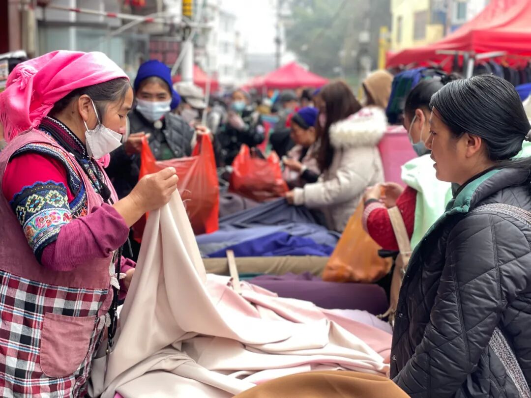 记者孔妃:大家好,这里是新街镇胜村集市。俗话说“衣锦还乡不如年货满筐!”赶年集、备年货是过年必不可少的重要环节。随着“年”的脚步越来越近,大家可以看到集市上非常热闹,满满的烟火气,人们都在忙着置办年货、买新衣,下面就跟随我们的镜头一起感受这浓浓的年味吧。