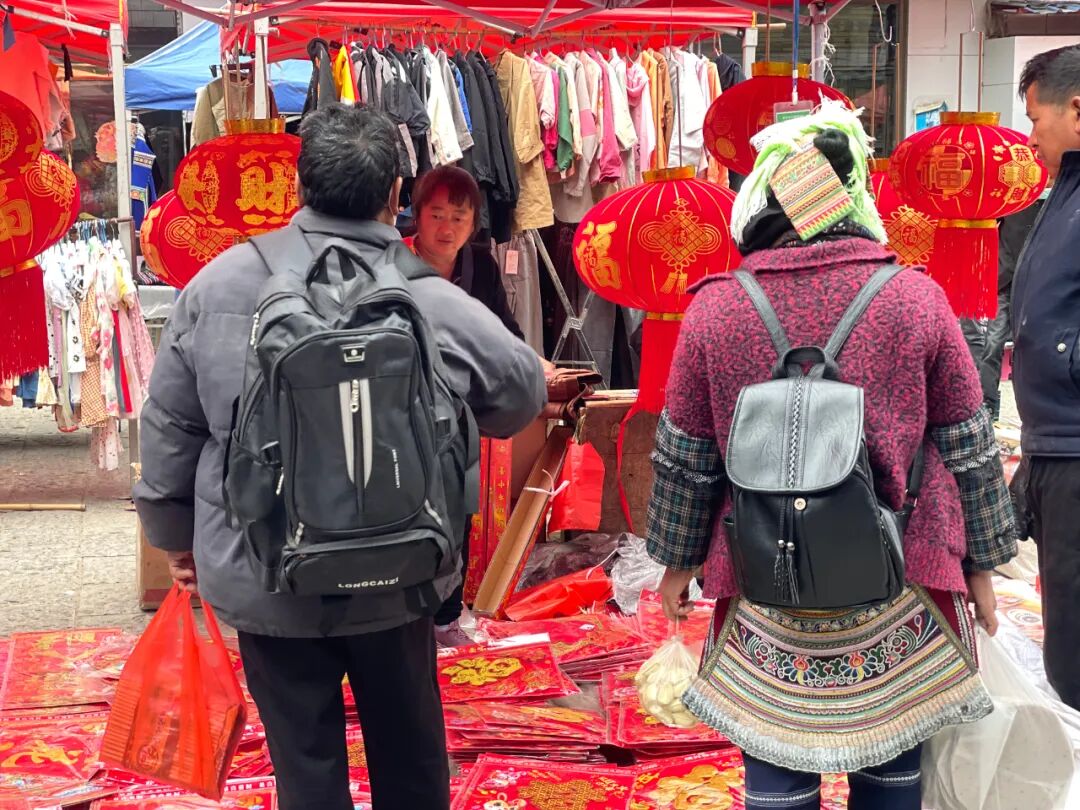 李兵是个九零后的摊主,他告诉记者,他家在这里卖彝族民族服饰已经20年了,因服装都是人工缝制的,深受广大市民青睐。李兵说:“因为临近过年,很多人都过来买衣服,生意特别好。”
