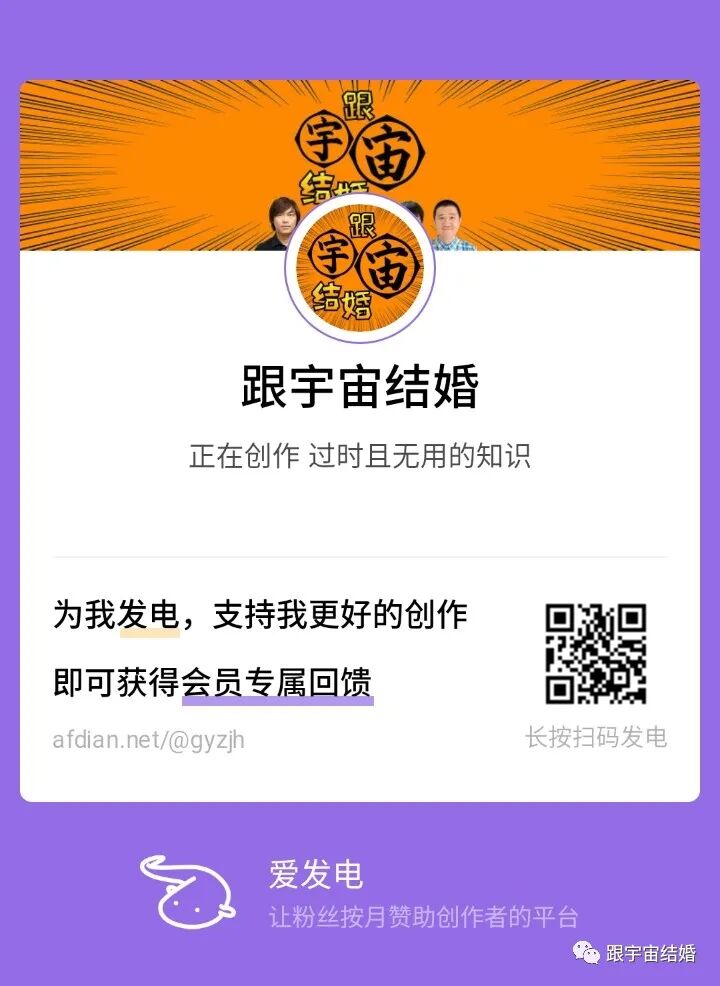 可以在AppStore搜索下载“爱发电”app,然后搜索“跟宇宙结婚”就能看到相关内容。