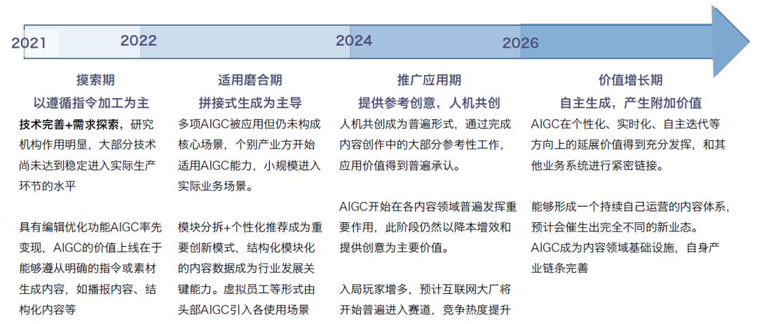 从内容生产方式的发展历程来看,可以大致分为专家生成内容(PGC)、用户生成内容(UGC)、AI生产内容(AIGC)三大阶段。
