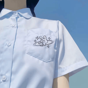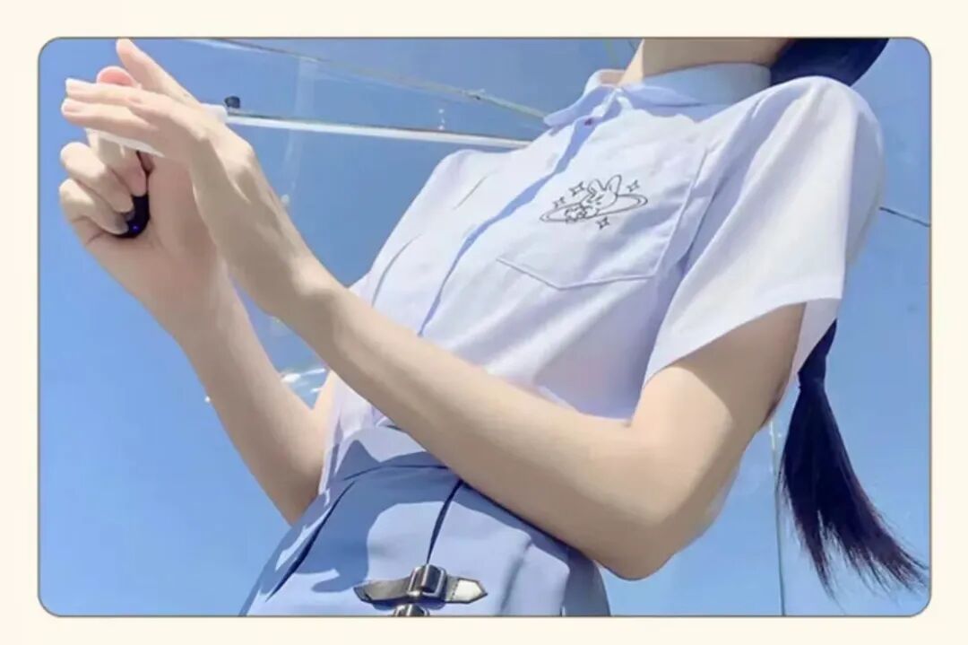 久辰有话说:TR面料。刺绣是可爱的小兔子~短款衬衫哟。今年中秋在9月上旬,适合天气还没转凉地区的小可爱!
