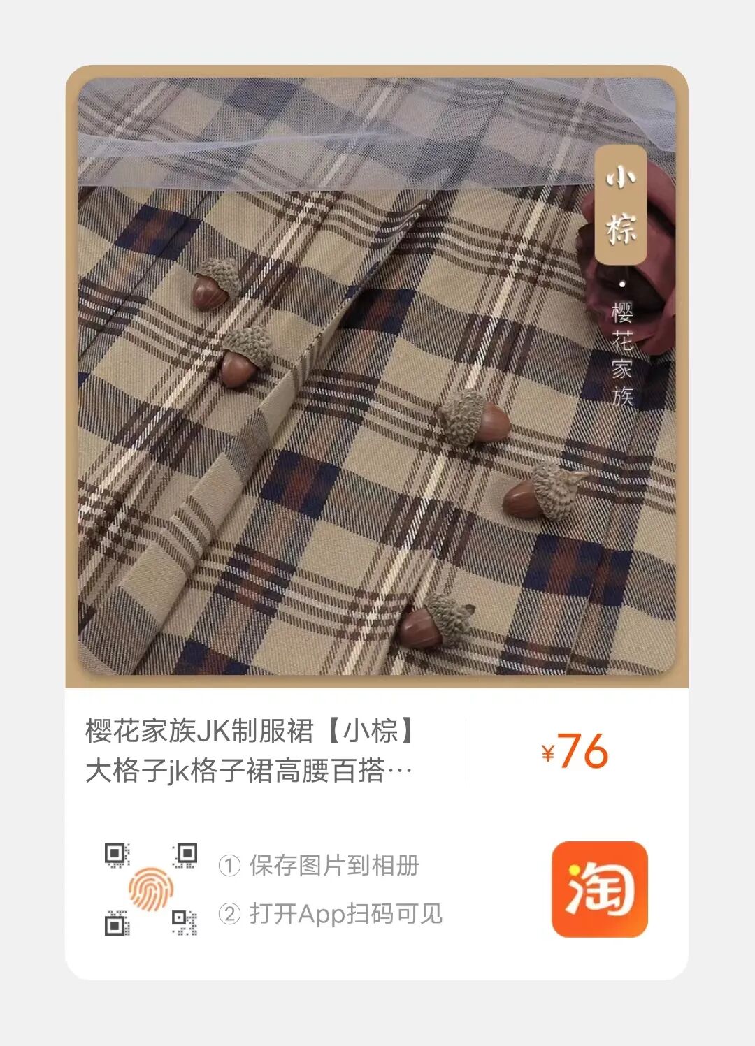 久辰有话说:小棕感觉很适合中秋呢!一样是棕色系的格裙,颜色也不会太深,上身可以搭杏色的西服!不过看评论料子会有些许薄,介意慎买哦~