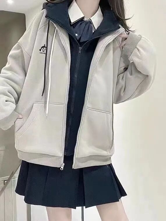 久辰有话说:含羊毛成分,可能容易起球,比较厚。个人觉得灰色非常好看,很秋冬,有樱花妹的感觉!