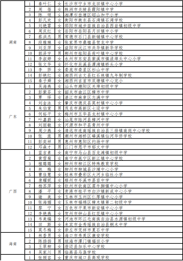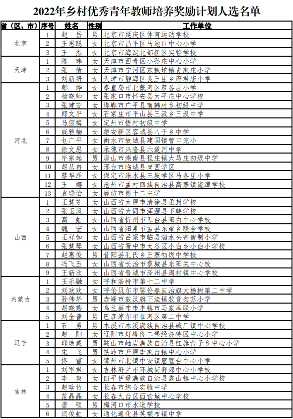 附件:2022年乡村优秀青年教师培养奖励计划人选名单