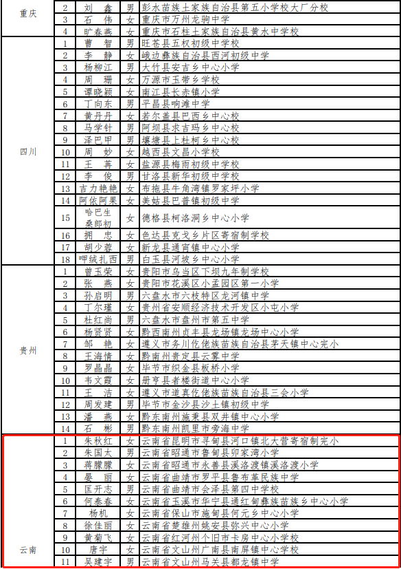 朱秋红 女 云南省昆明市寻甸县河口镇北大营寄宿制完小