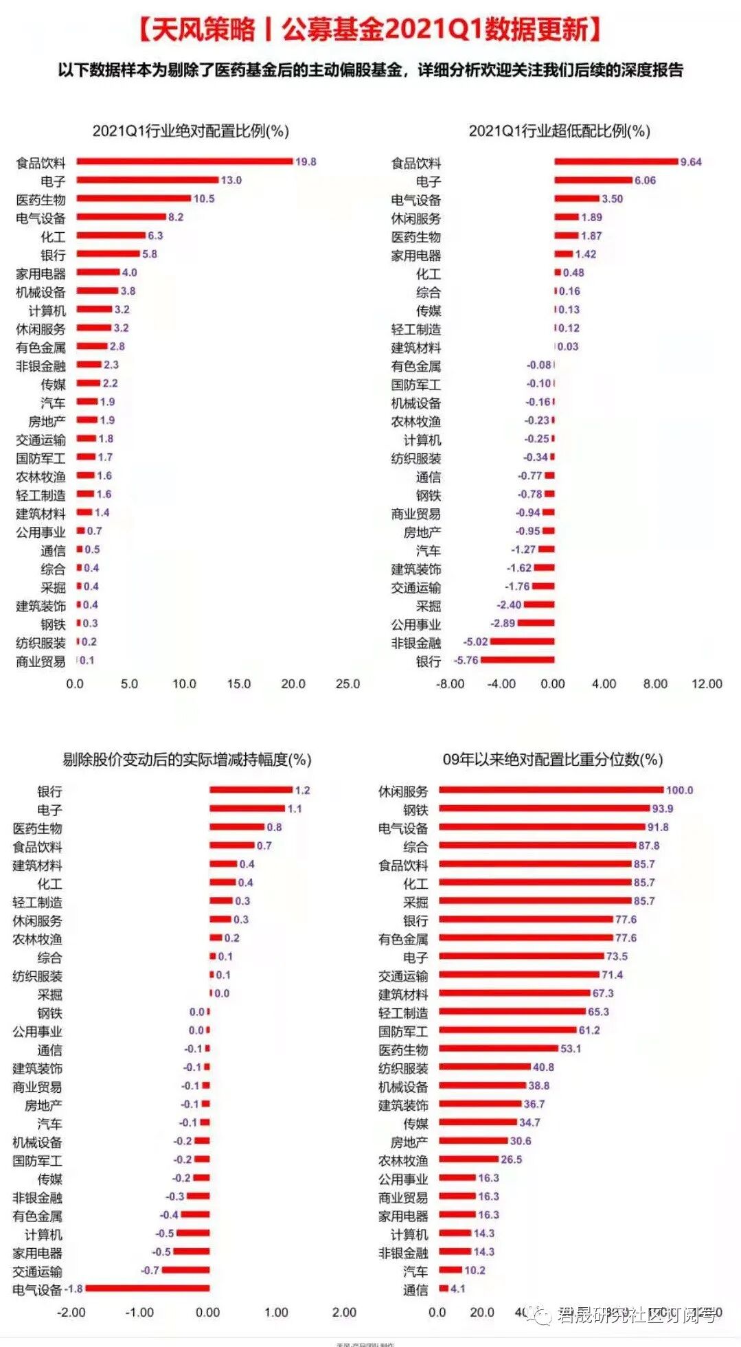 天风策略公募基金2021年一季度行业配置结构分析图: