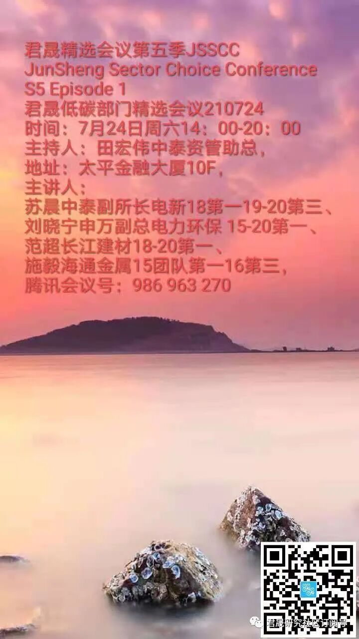 S5 Episode 1 君晟低碳部门精选会议210724六:986 963 270,田宏伟中泰资管助总,苏晨中泰电新、刘晓宁申万电力、范超长江建材、施毅海通金属。