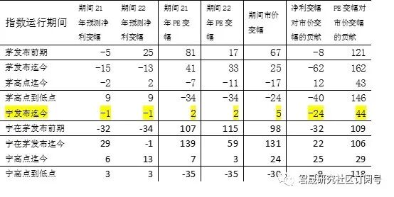 茅宁指数各阶段市值变动归因分析表
