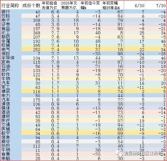 从2021年初迄今8月6日行业收益率表现来看,金属48%、半导体44%、化工40%、电气主要是新能源37%、生物30%是最强的五个WIND四级行业,年初自由市值超过8千亿元的大市值行业中银行-3%、饮料主要是白酒-14%、证券-14%、制药-4%、保险-35%、家电-15%、地产-19%、软件-8%、媒体-15%。