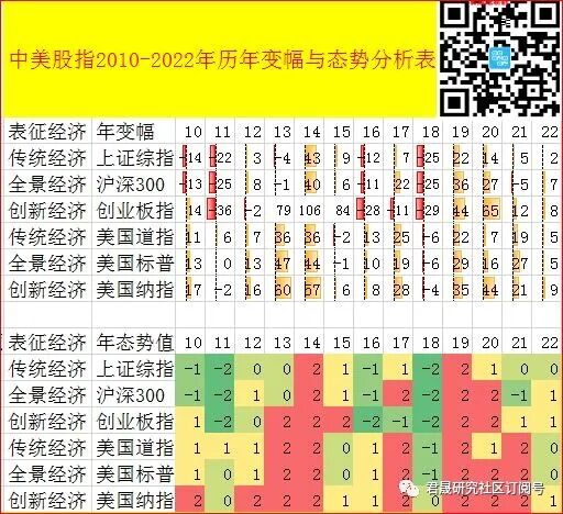 表 中美股指2010-2022年历年变幅与态势分析表