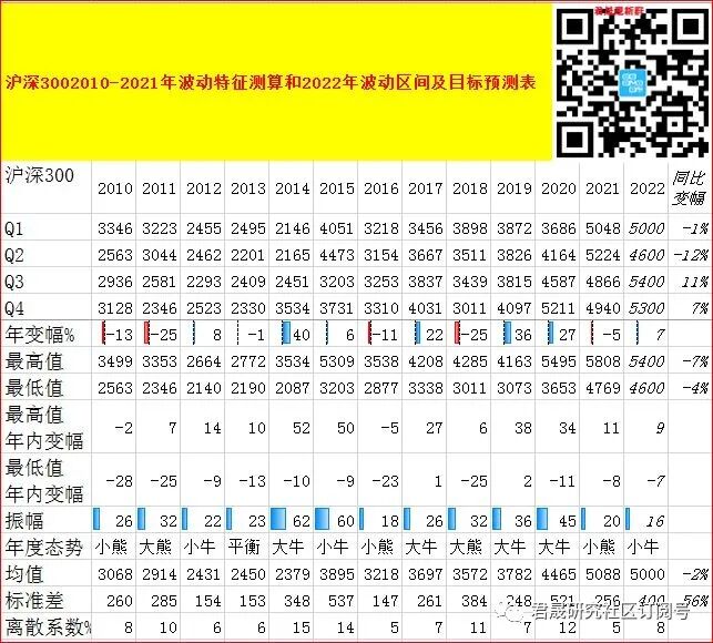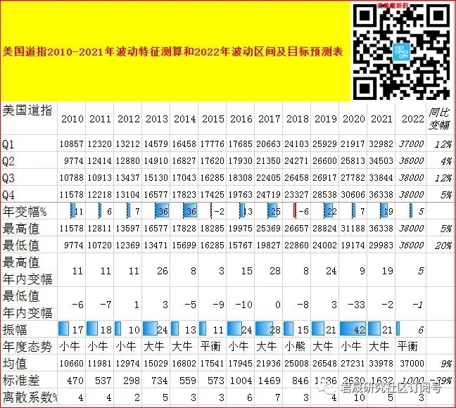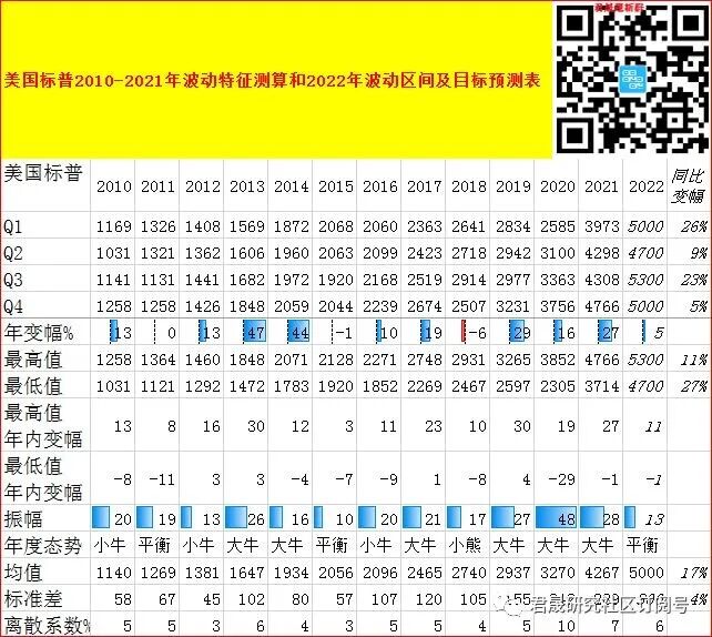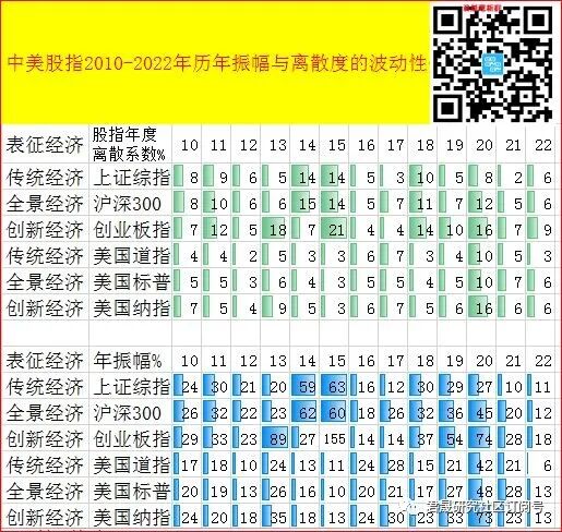 表 中美股指2010-2022年历年振幅与离散度的波动性分析表
