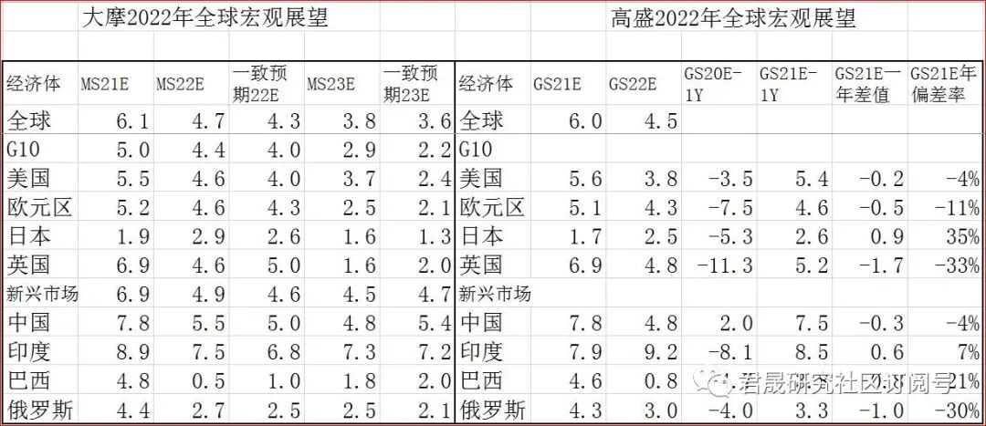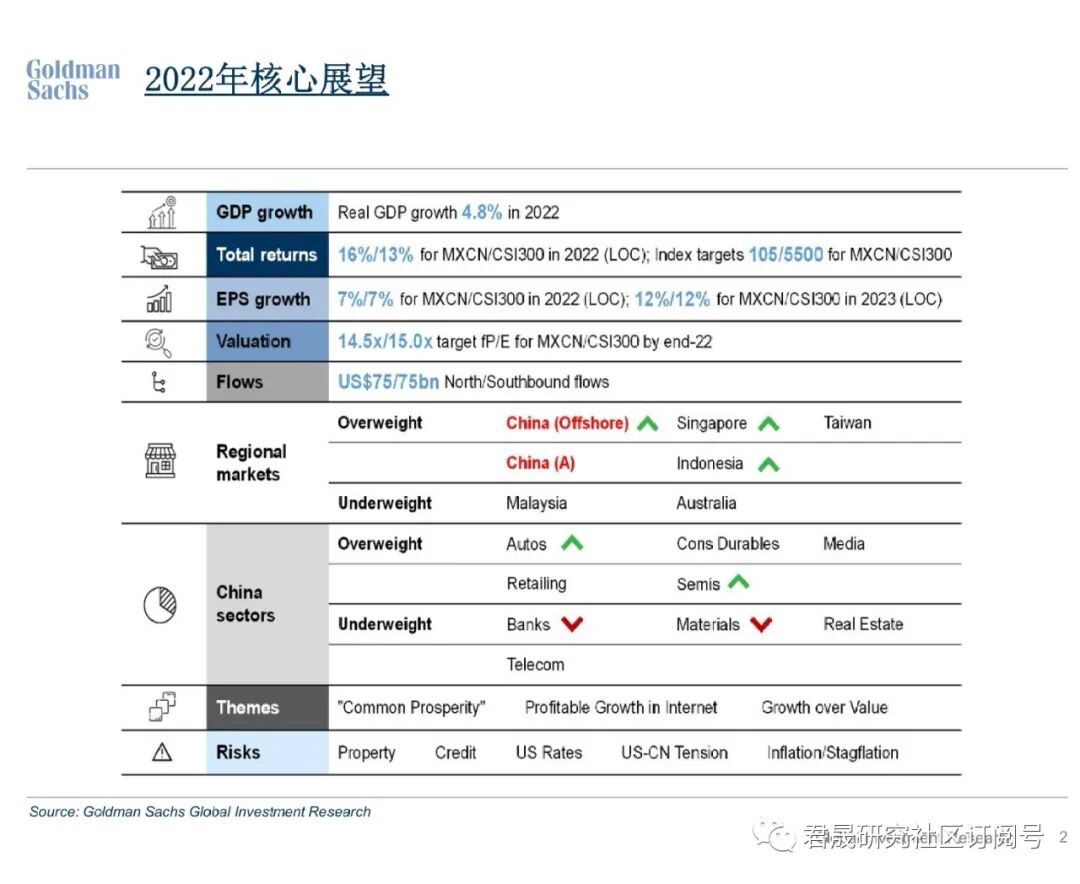 图 高盛《2022市场展望》核心展望图