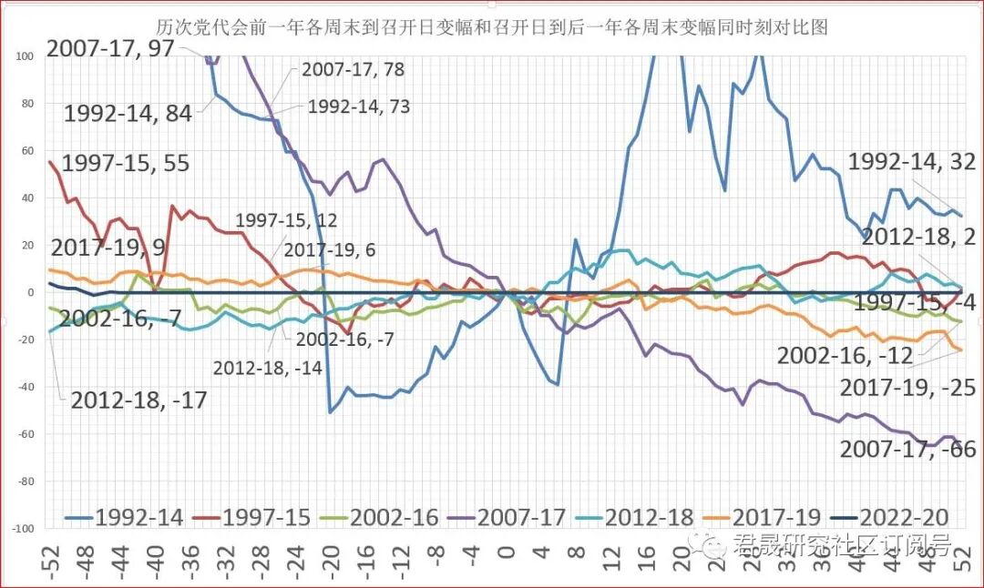 7、中国20大:中国20大是中国重大政治事件,中国将继往开来,延续稳定的政治格局,迎接波谲云诡的国际挑战。君晟预测2022年宏观政策会稳中趋暖,经济回归5.5%的潜在增速高质量中速运行,2022年资本市场不会大涨大跌。历史上六次党代会除2012年召开日前一年是大熊市外其他都是平衡市或大牛市,君晟预测2022年是上证综指是在正负5%区间波动和年变幅2%的平衡市、创业板指和沪深300是年变幅5%的强平衡市。预测中国2022年11月8日-14日举行20大。
