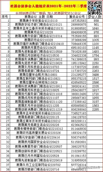 君晟辛丑年收官所长峰会220103周一:736 527 163, 主持人:李慧勇华宝基金首席经济学家,主讲人:陈果 中信建投副所长策略首席@上海、张忆东 兴业副院长全球策略首席 策略11/13-14第一海外研究17-21第一@上海、董广阳 华创所长食品17-19.21第一@上海、郭磊 广发首席经济学家宏观17-21第一@上海。