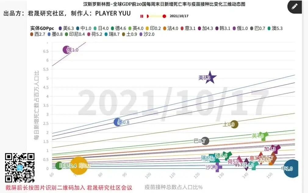 汉斯罗斯林三维动态图-全球GDP20国新增死亡率与疫苗接种比